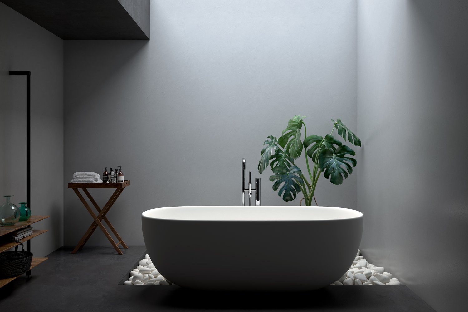 Hand-applied with a trowel, the surface reveals subtle irregularities and a delicate porosity that enhance its natural character. The reflection map plays a key role in bringing out these fine details, emphasizing the handcrafted nature of the finish and the soft interplay of light across the surface.