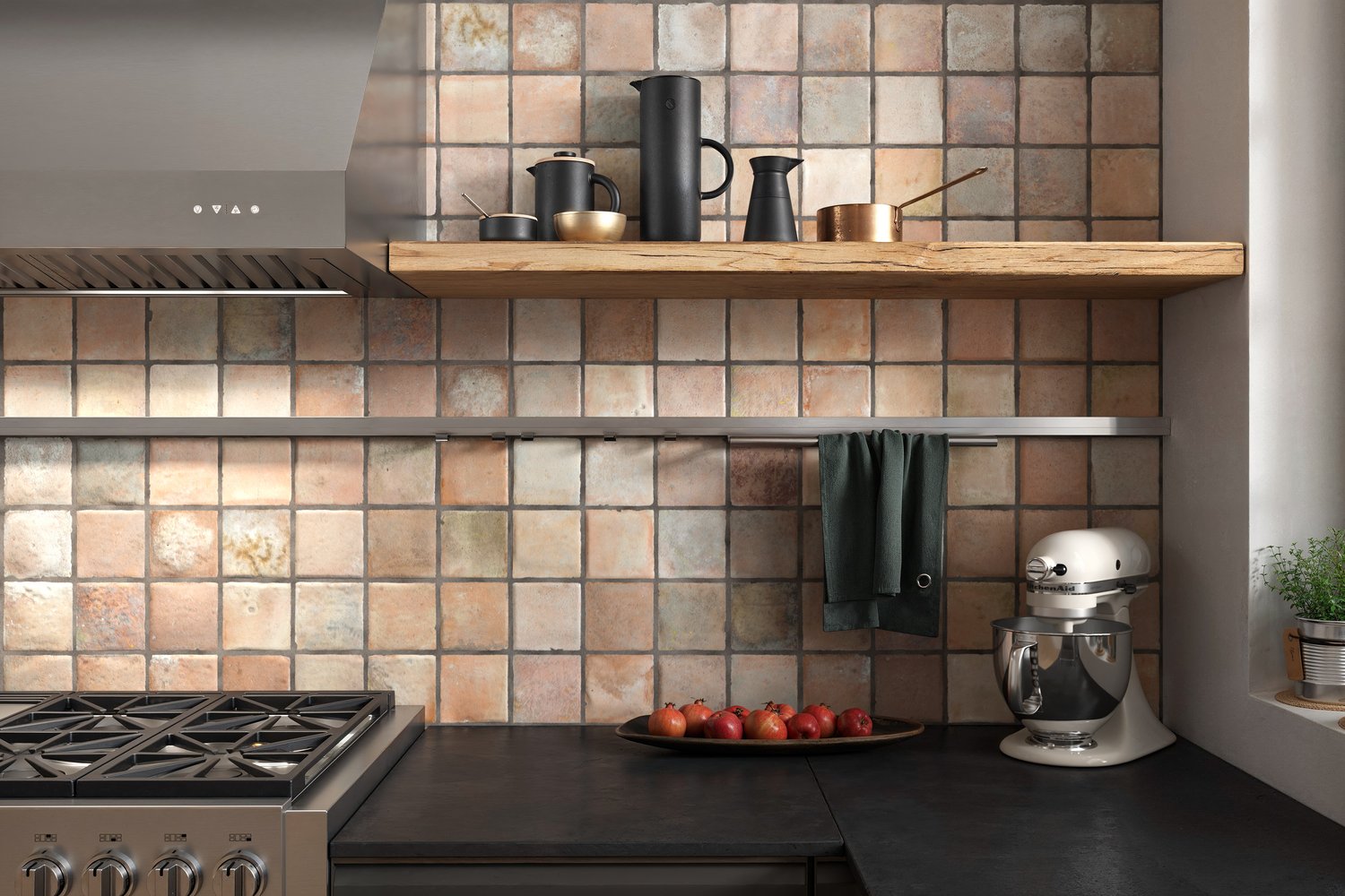 Small-sized tile texture, perfect for external floors or internal rustic-style rooms. In addition to being great for flooring, these tiles can also be used as wall coverings, such as in a country-style kitchen. Their range of colors adds an authentic and warm touch to any space, creating a welcoming and rural atmosphere.