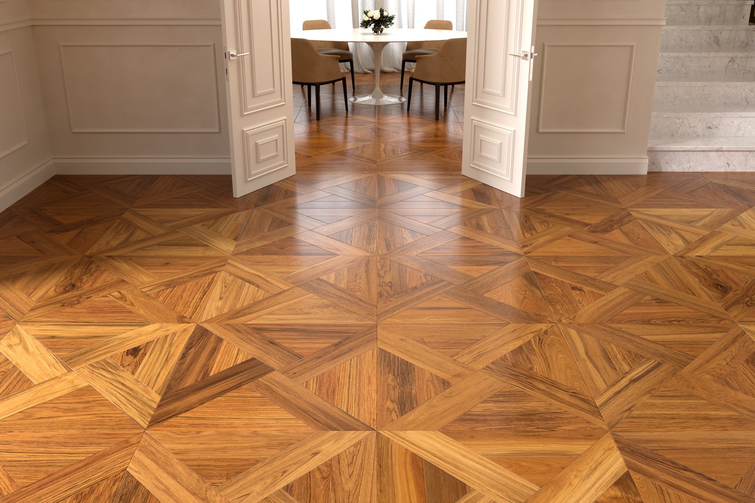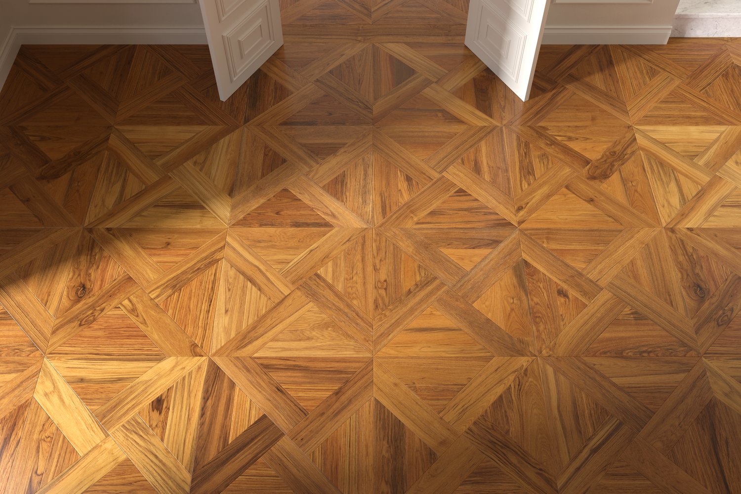 The proposed teak flooring is a choice of exquisite class, featuring generously sized tiles measuring 80x80 cm each, arranged in an intriguing cross pattern. Teak, renowned for its intrinsic beauty and weather resistance, imparts a warm and golden hue to the flooring, creating an inviting and luxurious atmosphere.